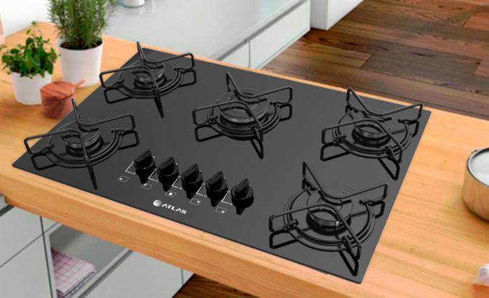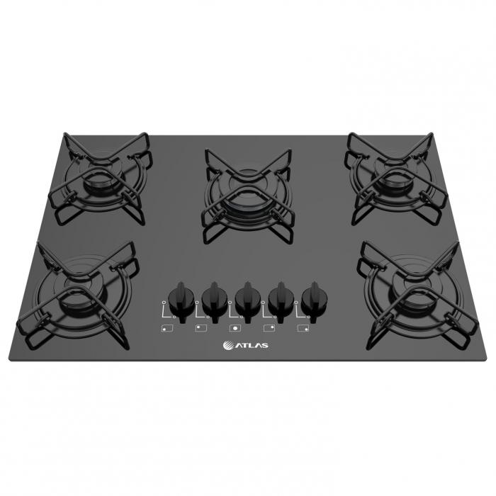 Cooktop à Gás 5 Bocas Atlas Agile Preto com Mega Chama